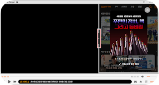 5.그럼 위와 같이 재생화면 부분에 광고가 표시가 되지를 않습니다. 오른쪽 표시가 되는 광고는 ◀ 부분을 클릭해서 숨겨서 사용을 하시면 됩니다.