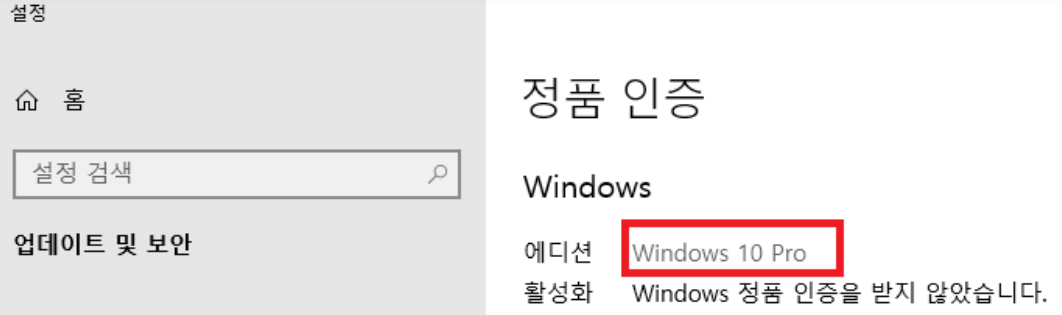 - ๋ฉ๋ด ์์ ์๋ "์๋์ "์ ์ฐพ์ "Windows 10 pro"๋ "Windows 10 Home" ๋ฑ์ ๋ฒ์ ์ด๋ฆ์ ํ์ธํฉ๋๋ค.