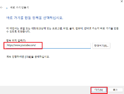 유튜브 바로가기 설정 방법