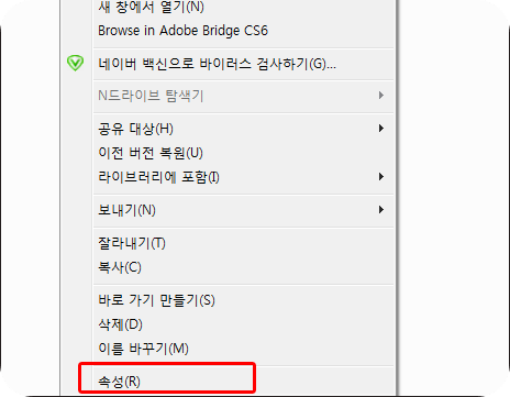 3. 속성 항목을 클릭을 하여주세요!