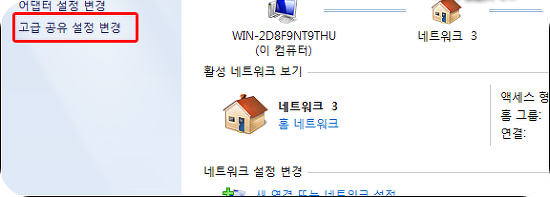 3.좌측에 있는 "고급 공유 설정 변경" 항목을 클릭을 하여 주세요!